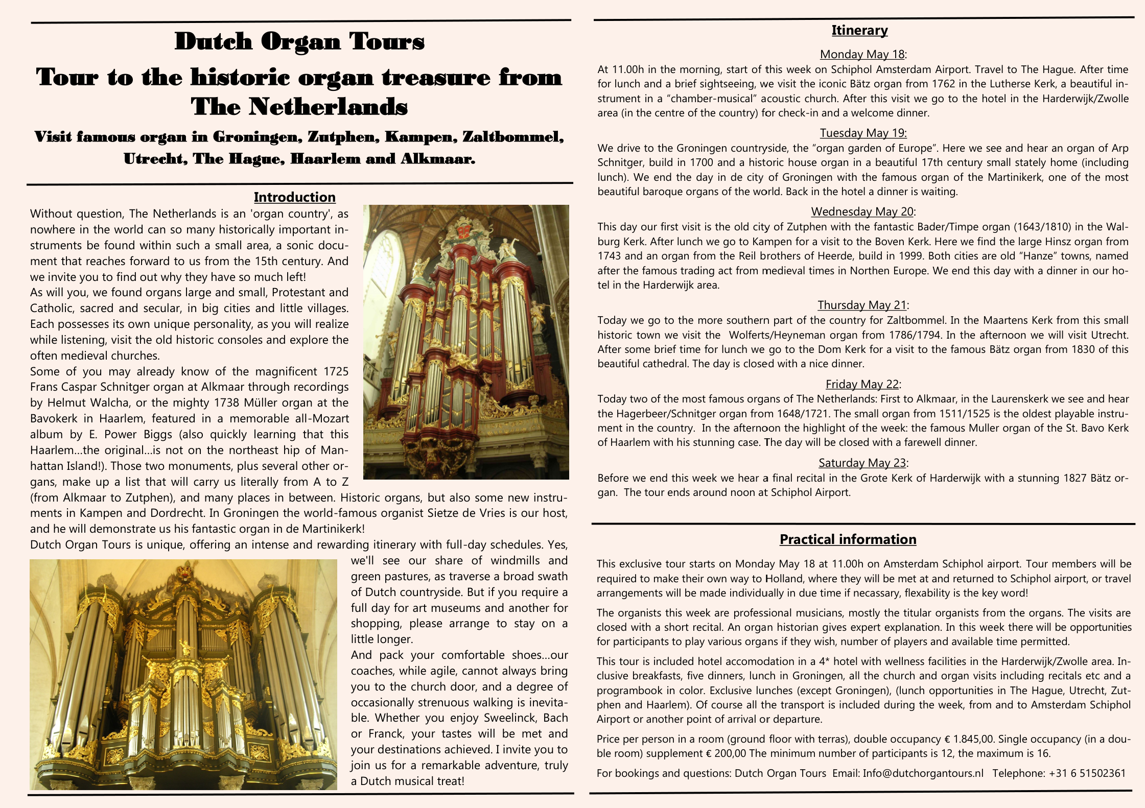 The tour is almost fully booked, so be quick to register for your participation! You can register via the contact page.